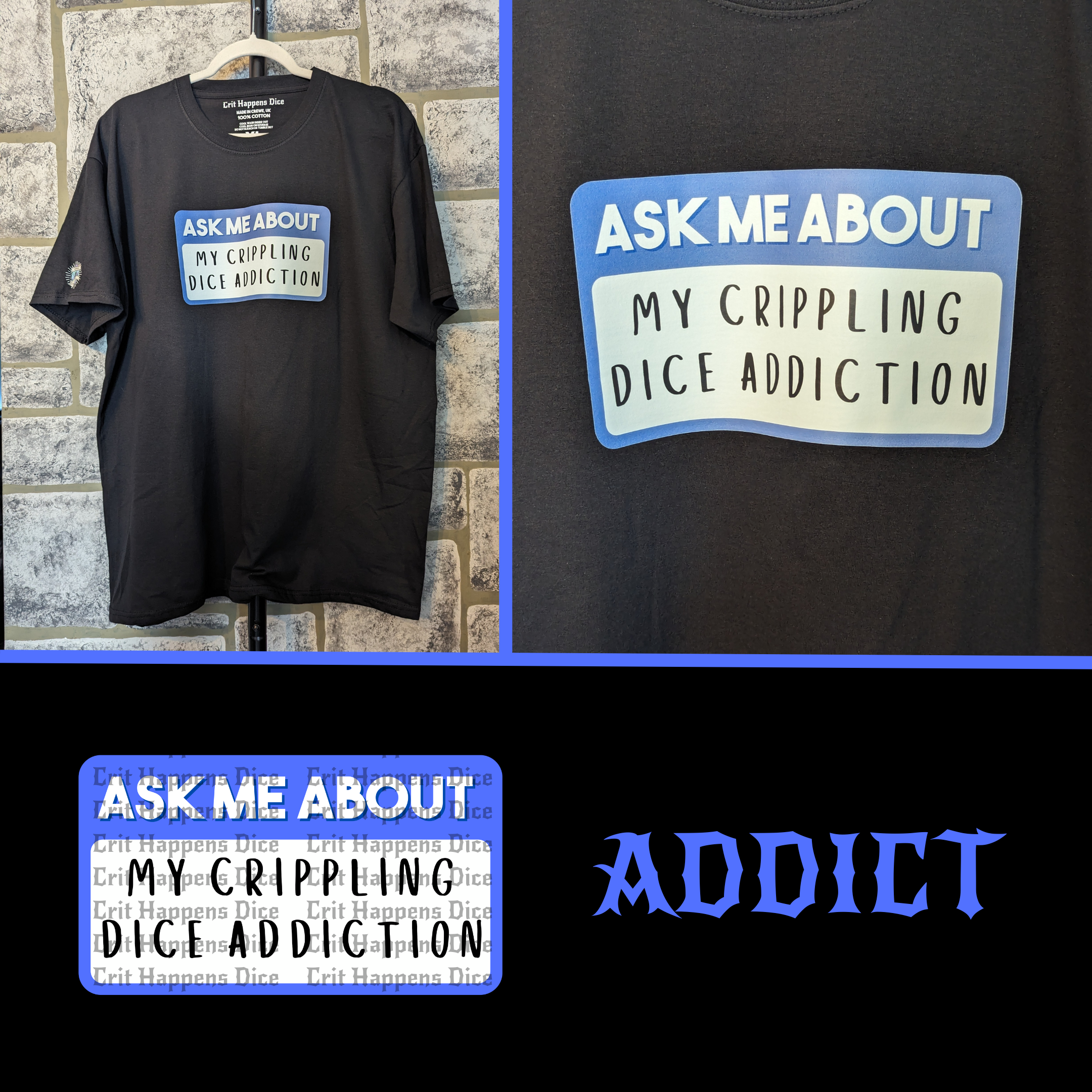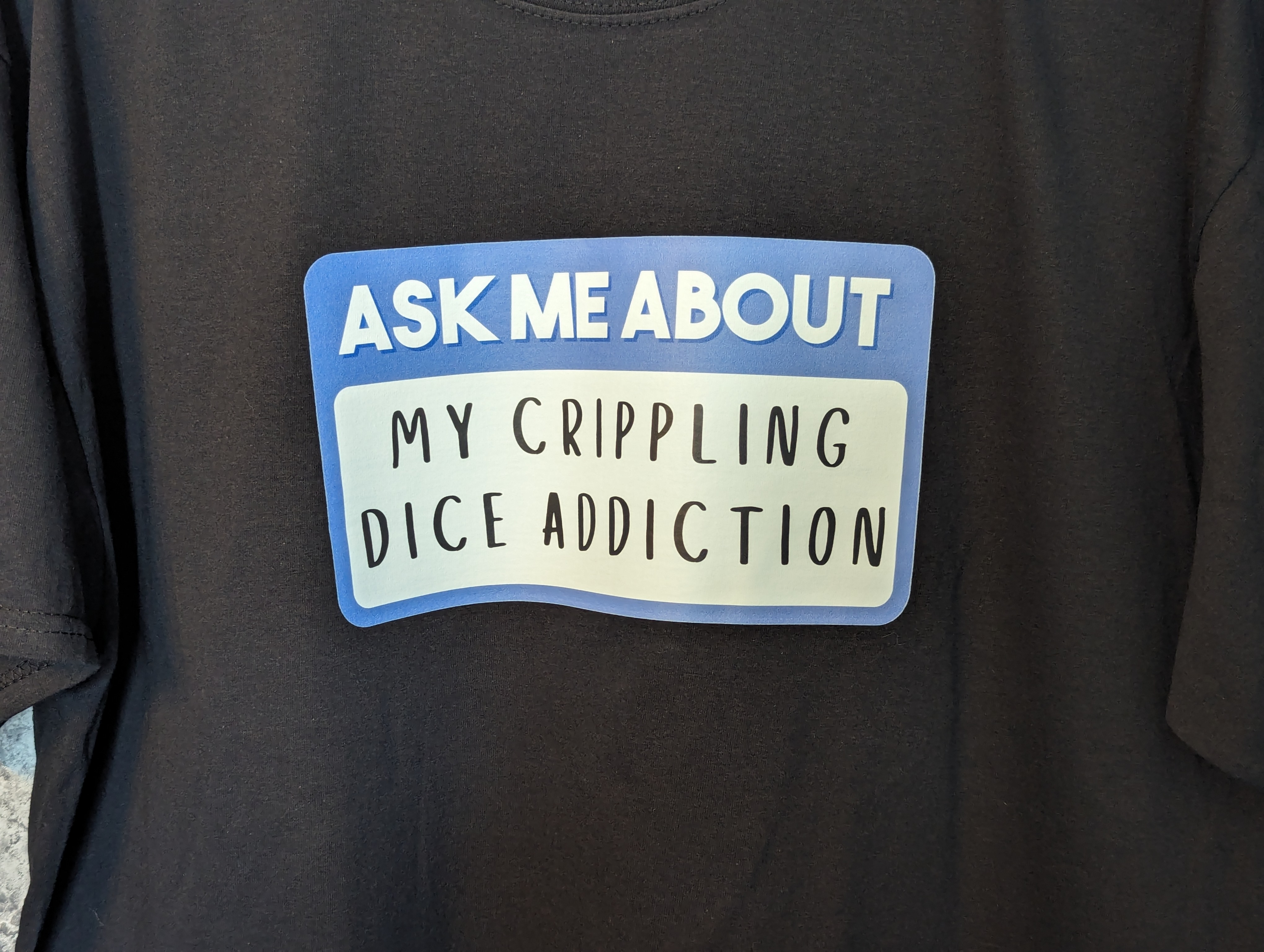 Perfect for games night, this 100% cotton t-shirt lets everyone know that your dice collecting might be a problem.