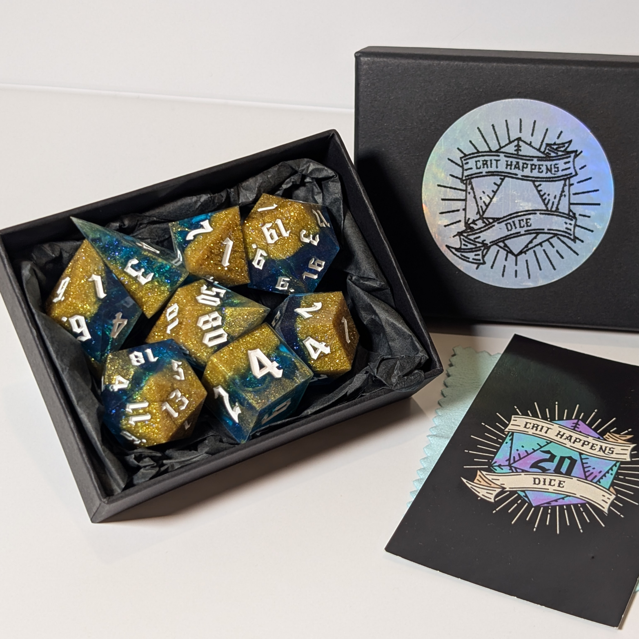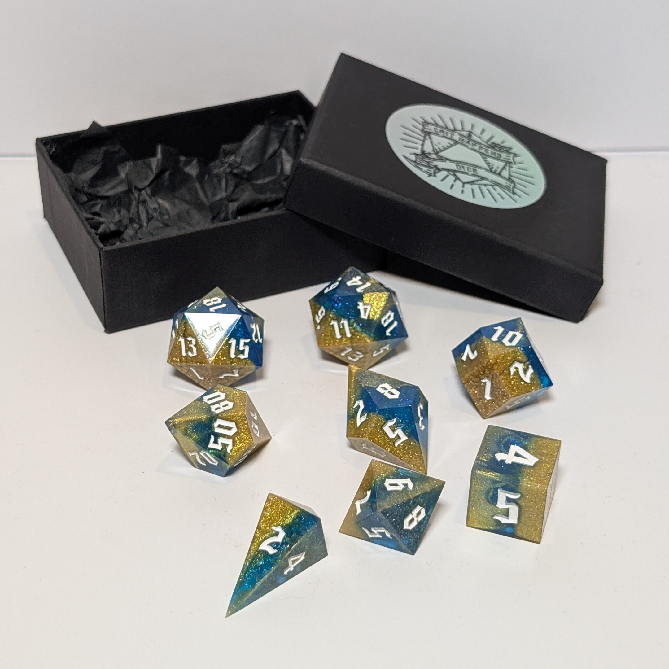 Ocean Gold – Handmade Sharp Edge Dice Set