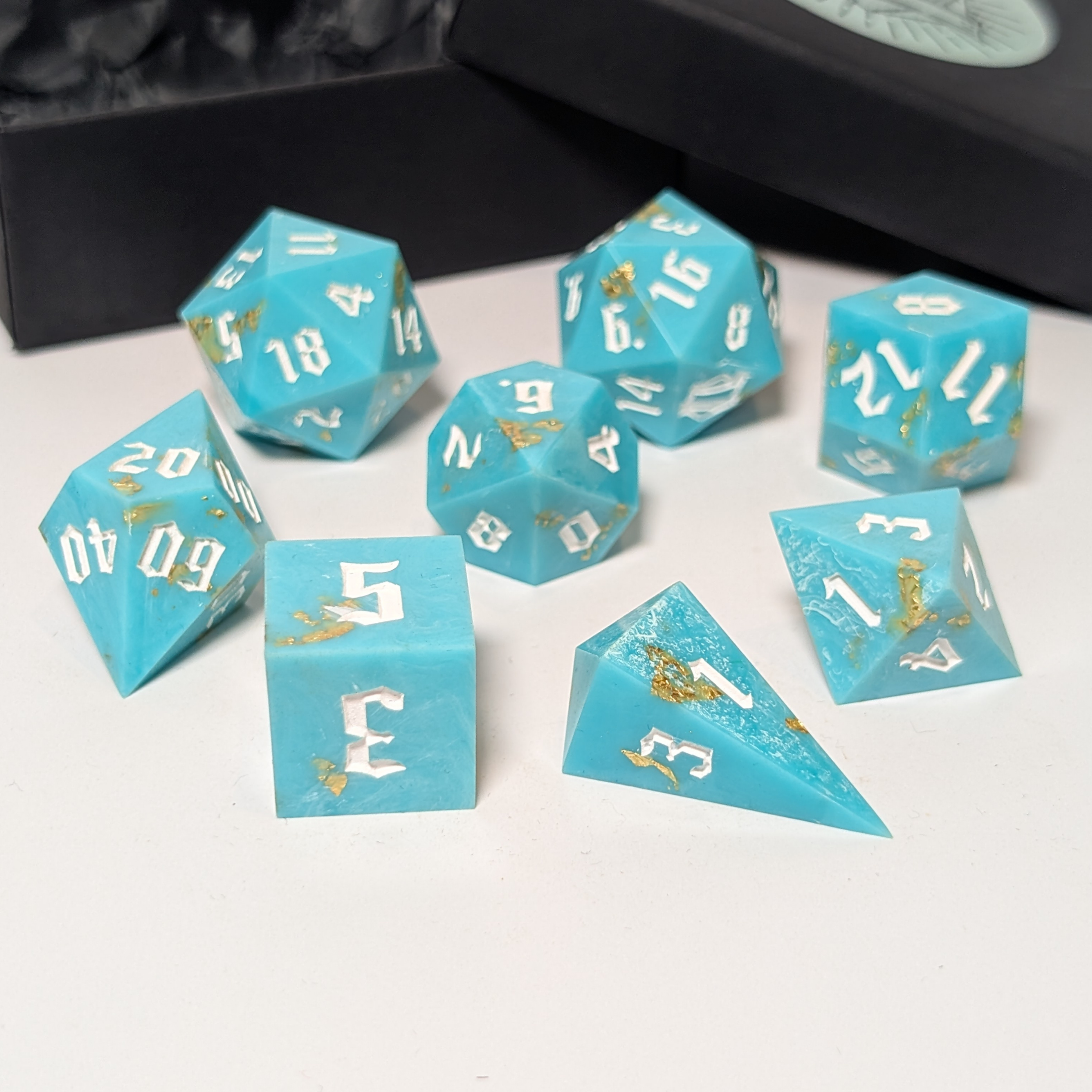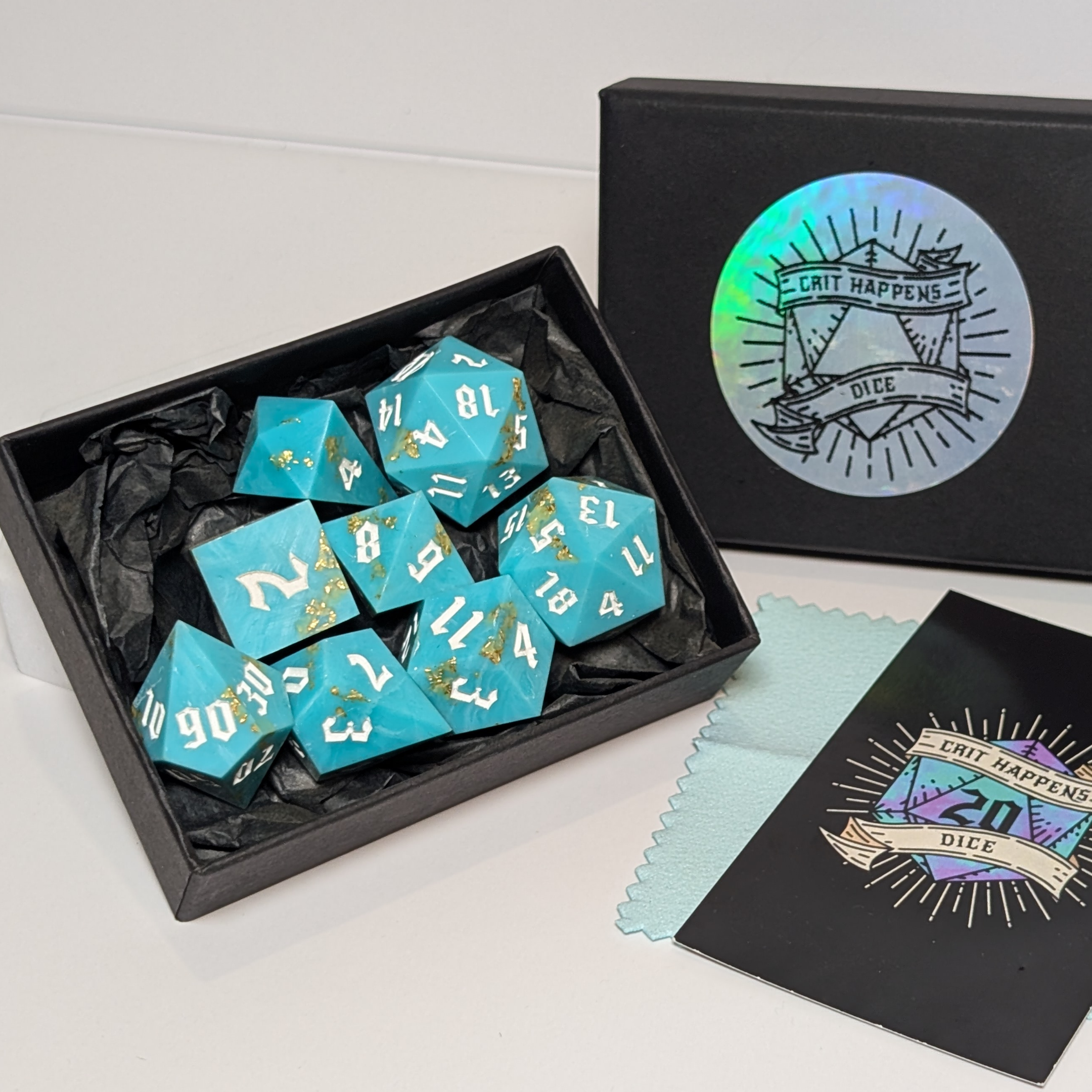 - Each dice set comes ready packaged in its own box lined with tissue paper and includes a cleaning cloth, making it perfect to gift to a fellow dice goblin or to keep for yourself.